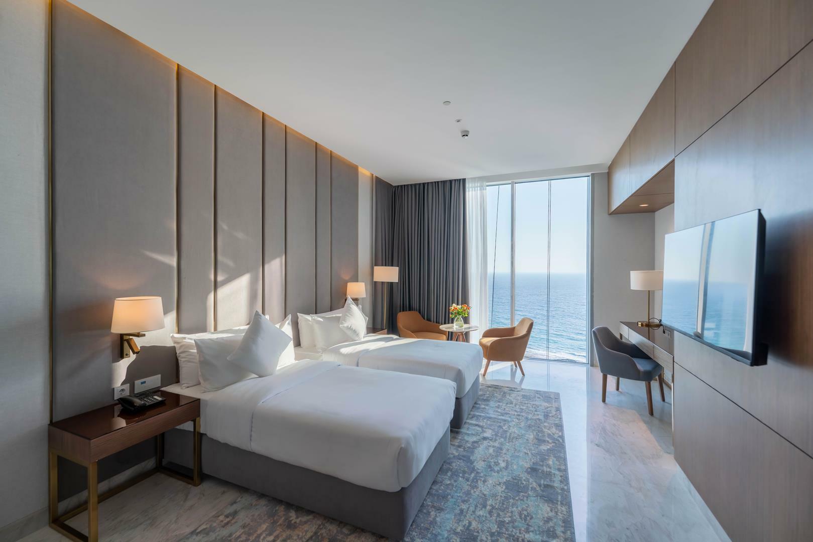 - اتاقهای مجهز و شیک: تمامی اتاقها با طراحی مدرن و امکاناتی همچون تلویزیون، اینترنت رایگان، یخچال، تهویه مطبوع و حمام اختصاصی تجهیز شدهاند.